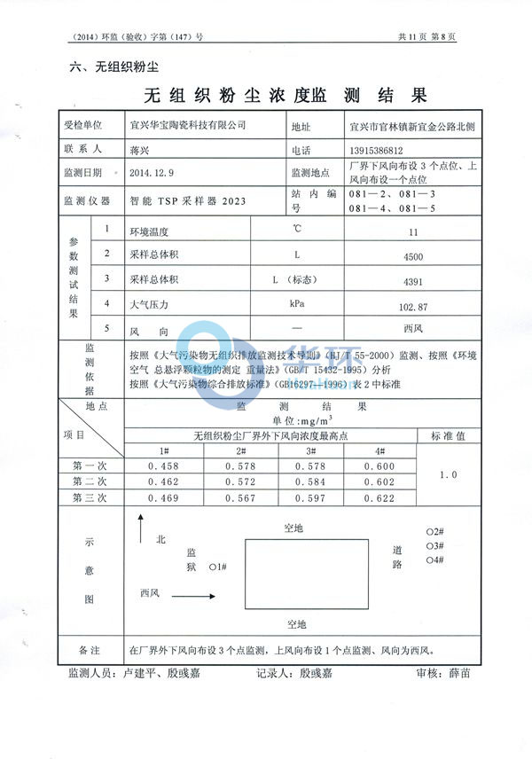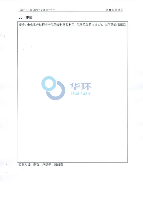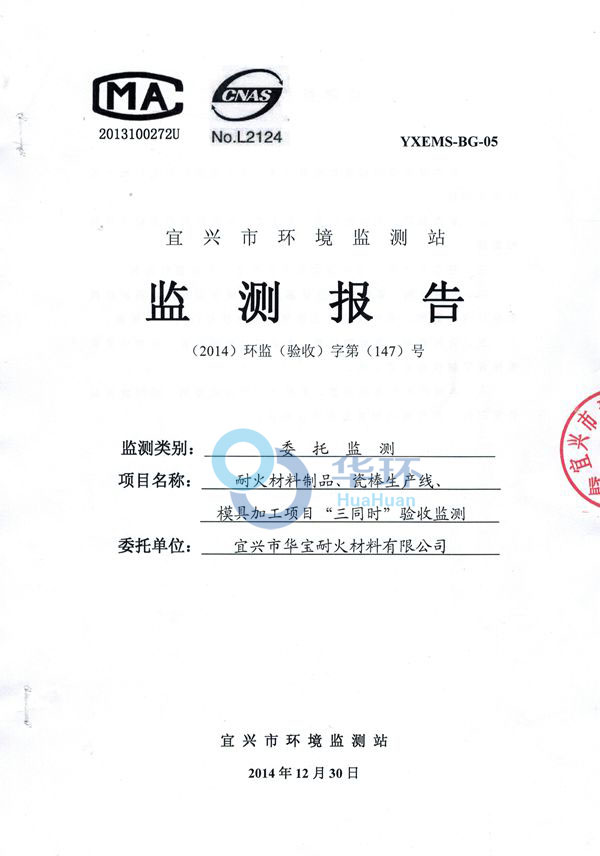 公司于2014年12月30日顺利通过环境”三同时“验收监测,现公示具体的《监测报告》!
